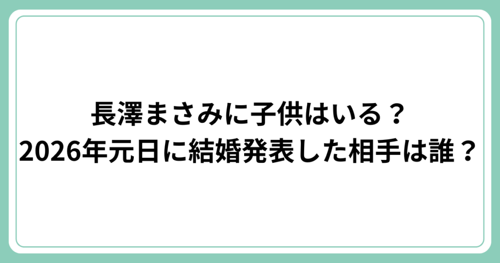 2026年元日、女優の長澤まさみさんが結婚を発表し、大きな話題となっています。 突然の結婚報告に、ファンからは祝福の声とともに「子供はいるの?」「相手は誰?」といった疑問の声も多く上がっています。 この記事では、長澤まさみさんに子供がいるのか... -